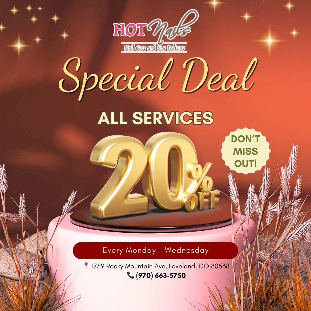 If you are seeking a nail salon where helps you to rejuvenate your beauty, Hot Nails is the ideal destination! Located conveniently in Loveland, Colorado 80538, our nail salon is proud to deliver the highest quality treatments to our customers.